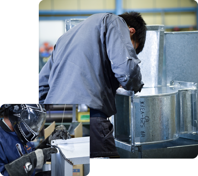 ABOUT US 空気の流れをつくるプロへ建物の空調が正しく機能するためには、空気が通る“道” となるダクトが欠かせません。私たちは、そのダクトを一枚の板金から形にしていくプロフェッショナルです。精度が求められる技術ですが、未経験からでも丁寧に学べる環境があります。建物の快適さを支える裏方として、確かなものづくりに挑戦したい方を歓迎いたします。
